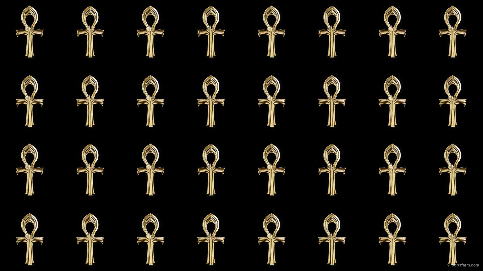 Download royalty free Art Deco golden Ank Cross elements Grid Pattern isolated on black background Ultra HD VJ Loop