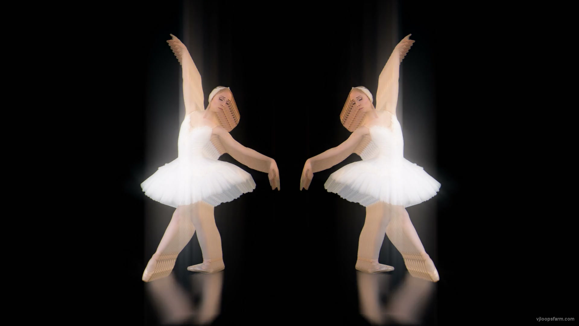 Download Royalty free Ballet Swan dancing girl flying in tunnel on black 4K VJ Footage