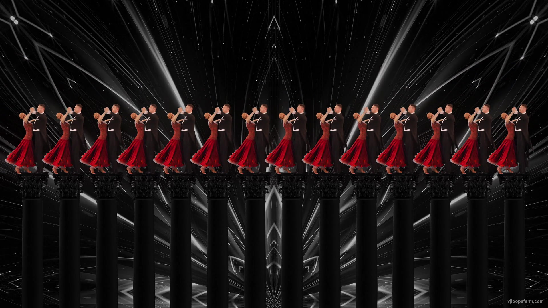 Royalty-fee vj video loop for stage concerts led screens. 30fps with seamless looped effect. Exclusive royalty free stock video vj clip of Ballroom dancing couple spinning in BW Light Flower Pattern Middle Vienna Waltz Valse UltraHD Video VJ Footage download at People video category at VJ Loops Farm. 3840x2160 UltraHD VJ video for multi-purpose use. For clubs and venues, events and festivals. For business and education.