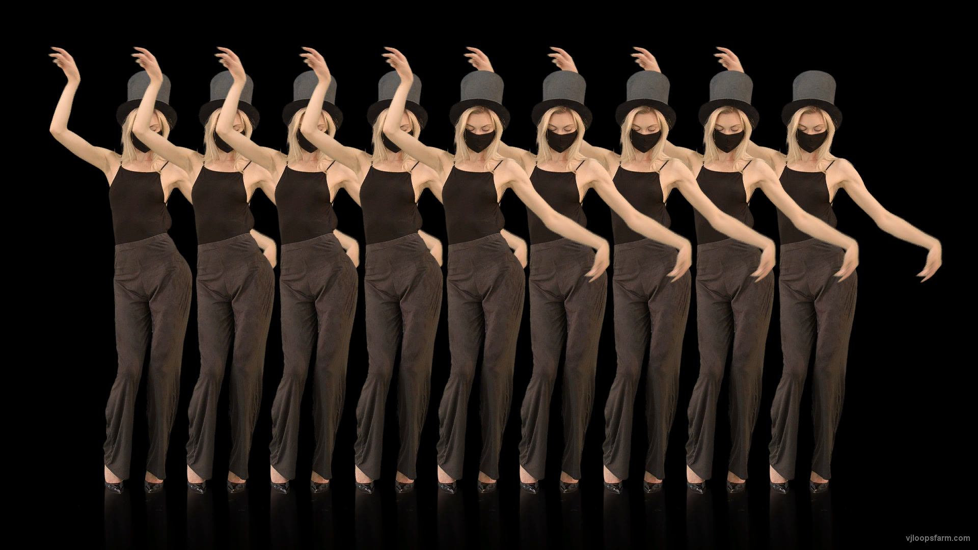 Royalty fee video background for vjs and visual artist. Instant download for 30fps video vj loop with seamless effect. Exclusive royalty free video of Beauty Blonde Girl in Covid-19 black mask dancing isolated on black background 4K Video VJ Footage download at Dance video category. 4096x2304 4K Video VJ Clip encoded by Quicktime Photojpeg. Multi-purpose creative digital asset. For clubs and venues, events and festivals. For busines and education. Amazing DJs motion backgrounds for virtual production and live events