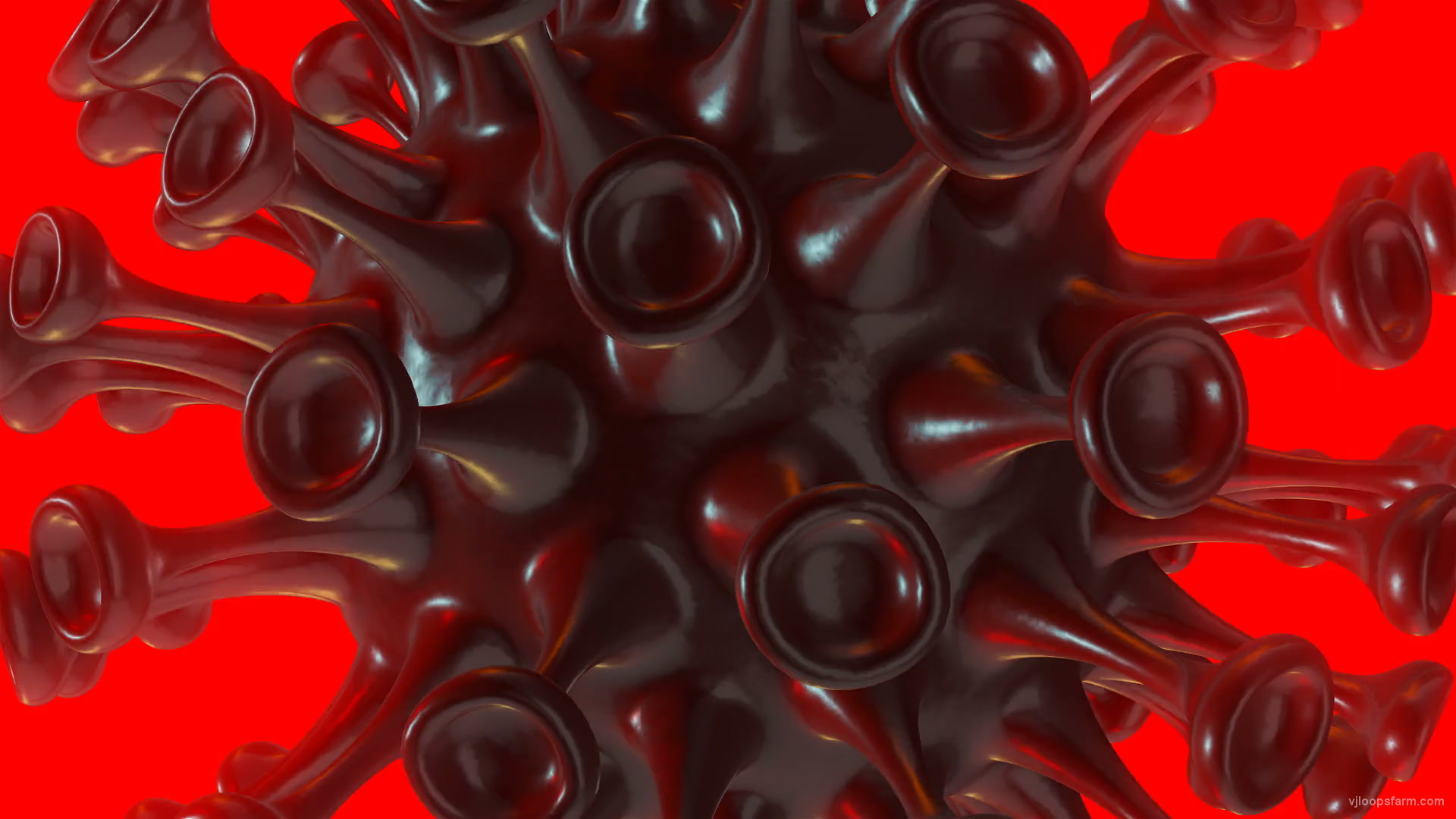 Download royalty free Big Frame Corona Virus Covid19 Ball Rotating with strobing effect 4K Video VJ Loop