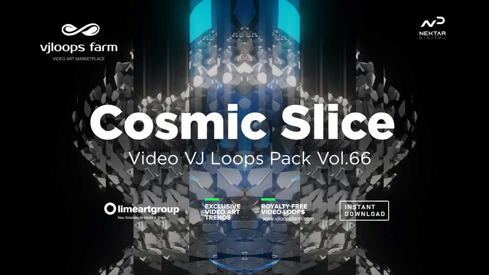 Cosmic slice is a heart throbbing, mind blowing collection of VJ loops. Featuring glass looking space age orbs, polygon animations, 3D effects, that slice, dice, mutate and generate. High quality vfx work which makes sure you can easily beat match these vj loops to create stellar performances. HD resolution, 24 loops, 60fps for pixel smooth animations.