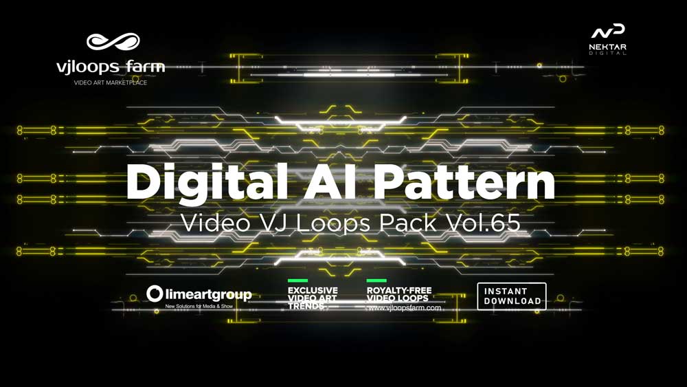 Exclusive video art VJ Loops Pack for Vjing and Live Video Mixing produced with high quality by Visual artist, VJ and Motion Designer Alexander Kuiava. Instant download for 29fps video vj loop with seamless effect. Exclusive royalty free video of Digital AI Pattern - Video VJ Loops Pack Vol.65 download at VJ Loops Packs video category. 1920x1080 Full HD VJ Video Loop encoded by DXV, Quicktime Photojpeg. Powered by Nektar Digital.
