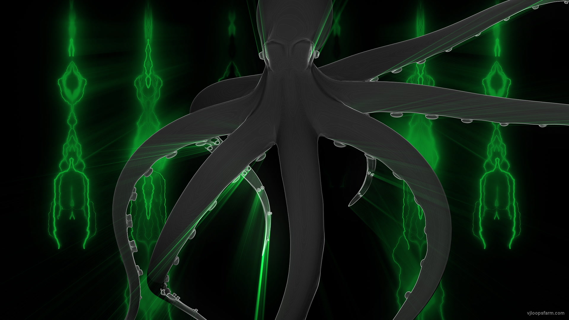 Download Green PSY Octopus CloseUp Rays Lightning Full HD Video Art VJ Loop