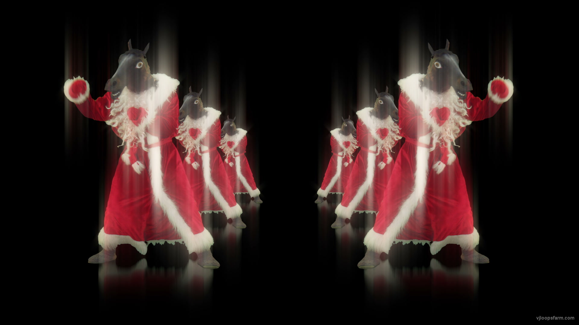 3840x2160 UltraHD resolution Horse head santa displays his boxing fighting skills isolated on black background - holographic video art VJ Loop Video VJ Footage by Holographic Loops category