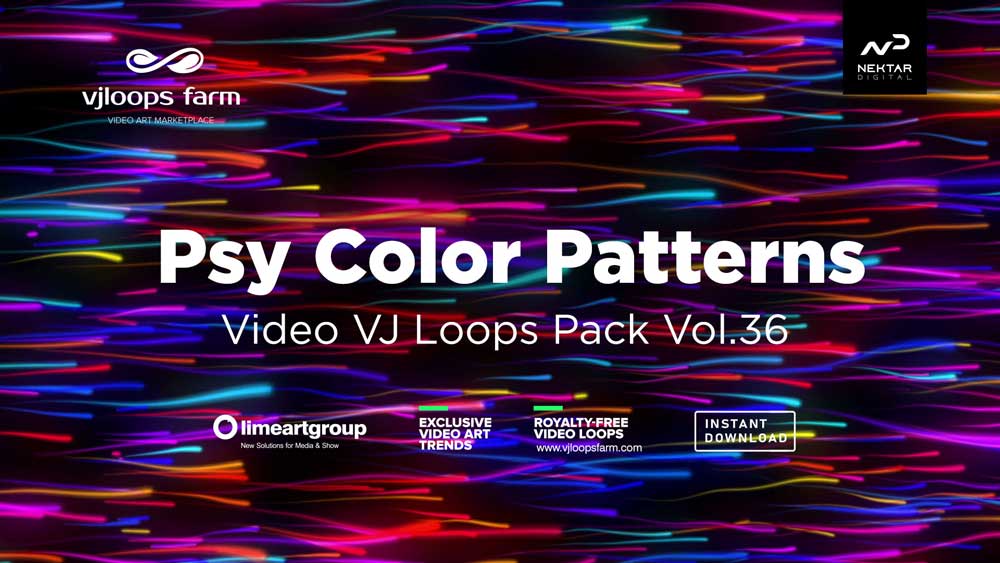 Exclusive video art VJ Loops Pack for Vjing and Live Video Mixing produced with high quality by Visual artist, VJ and Motion Designer Alexander Kuiava. Instant download for 30fps video vj loop with seamless effect. Exclusive royalty free video of Psy Color Patterns - Video VJ Loops Pack Vol.36 download at VJ Loops Packs video category. 1920x1080 Full HD VJ Video Loop encoded by DXV, Quicktime Photojpeg. Powered by Nektar Digital.