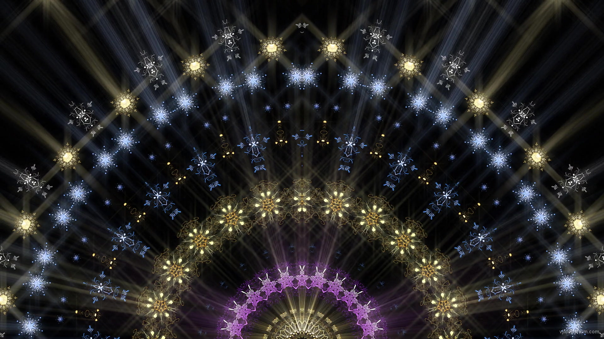 Download Radial Mirror Snowflake pattern in gold-blue-pink stars with rays Ultra HD VJ Loop