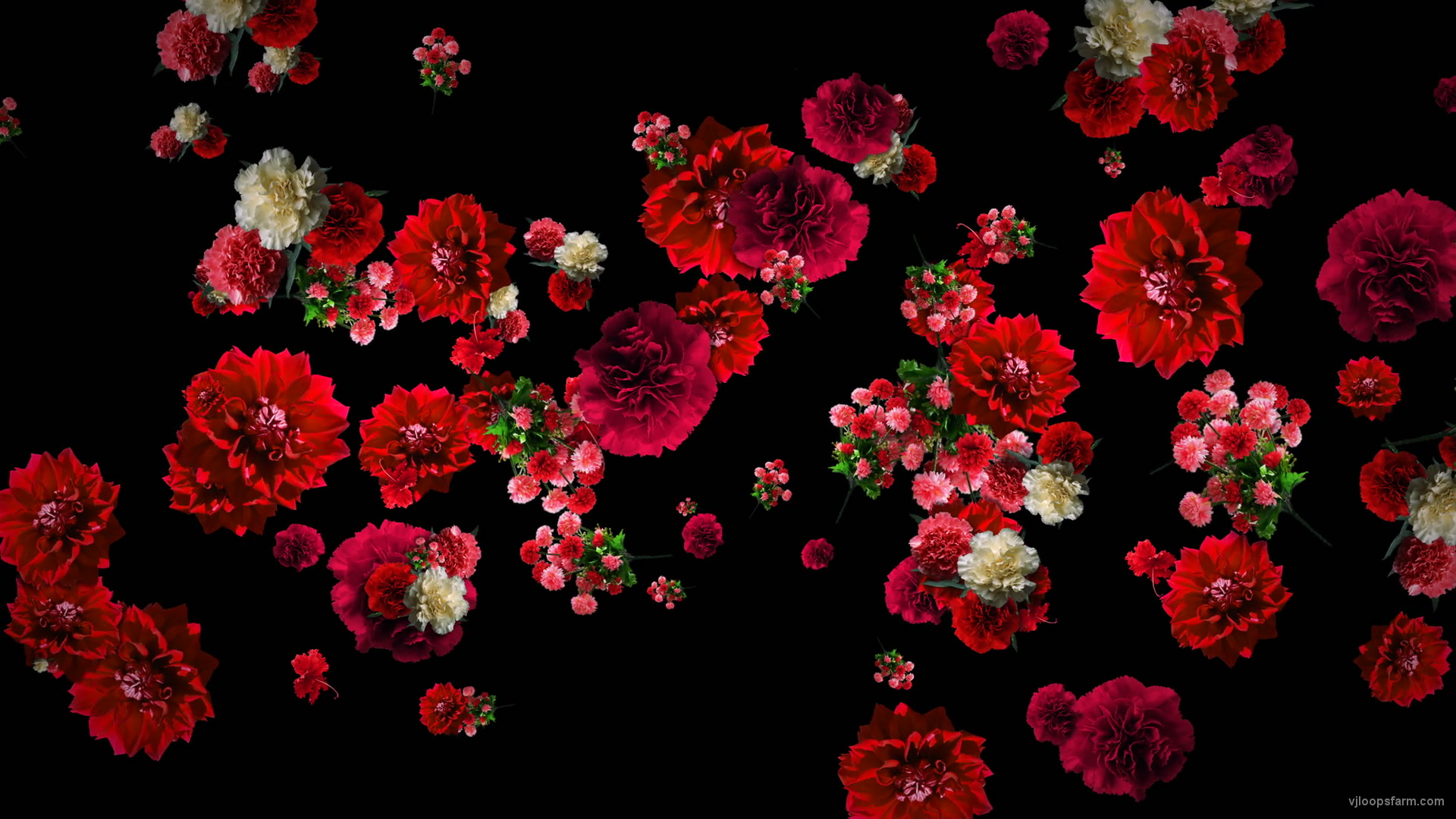 Download royalty free Red Carnation Bouquets Slowly Falling Motion Background