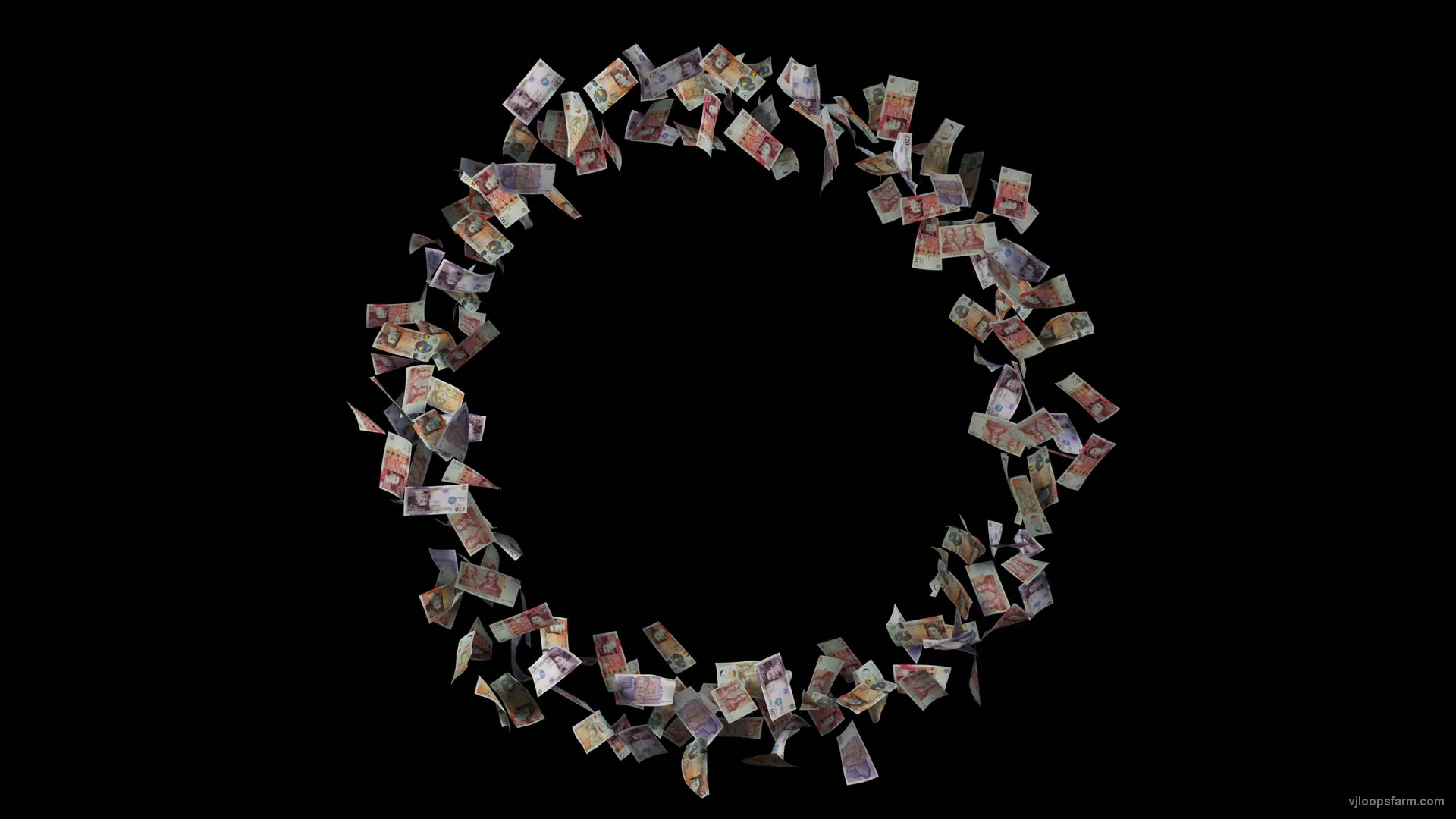 Royalty fee video background of different currency banknotes isolated on black background. Instant download for 60fps video vj loop with seamless effect. Exclusive royalty free video of Small rotating circle of Great Britain pounds of sterling bills download at National video category. 4096x2304 4K Video VJ Clip encoded by Quicktime Photojpeg. Multipurpose creative digital asset. For clubs and venues, events and festivals. For business and education. For hologram video projections and video editing projects. Amazing DJs motion backgrounds for virtual production and live events.