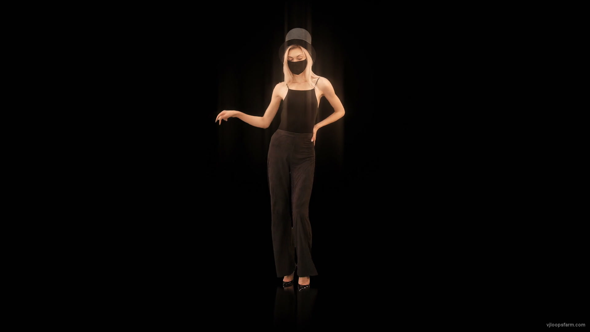 Download royalty free Softly Girl in Covid-19 black mask dancing isolated on black background 4K Video Art VJ Footage looped