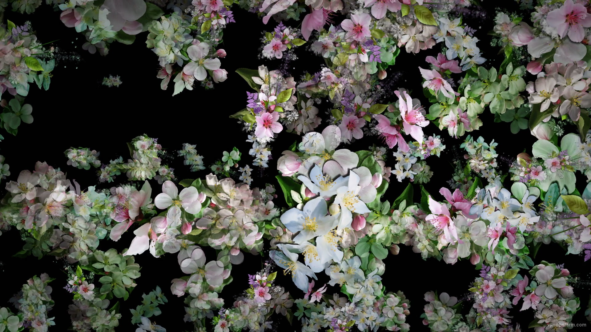Royalty free video background with infinite flow of various color and nature flowers, buds and bouquets. Decorate a wedding event, ceremony, exhibition and any other event! Instant download for 60fps video vj loop with seamless effect. Exclusive royalty-free video of Spring Fruit Trees Flowers with Leaves Flow to the Side Scene Decoration download at Resolutions video category. 4096x2304 4K Video VJ Clip encoded by Quicktime Photojpeg. Multipurpose creative digital asset. For clubs and venues, events and festivals. For business and education. For hologram video projections and video editing projects. Amazing DJs motion backgrounds for virtual production and live events.