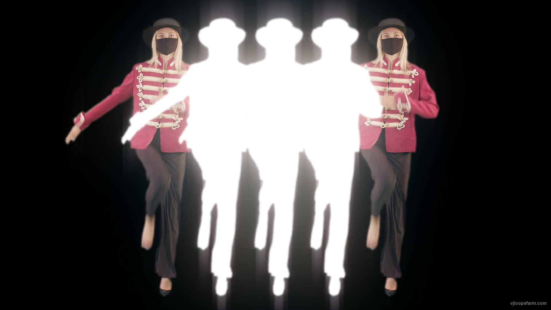 Download royalty free Strobing Five Girls In Mask Empire royal woman marching Video Art 4K VJ Footage Looped