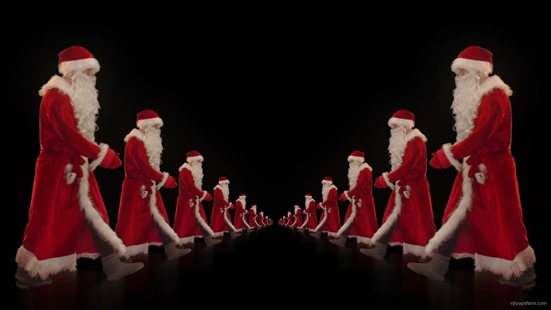 Download Royalty free Twins of Santa Claus opposite walking isolated on black background Video Art 4K Vjing Footage