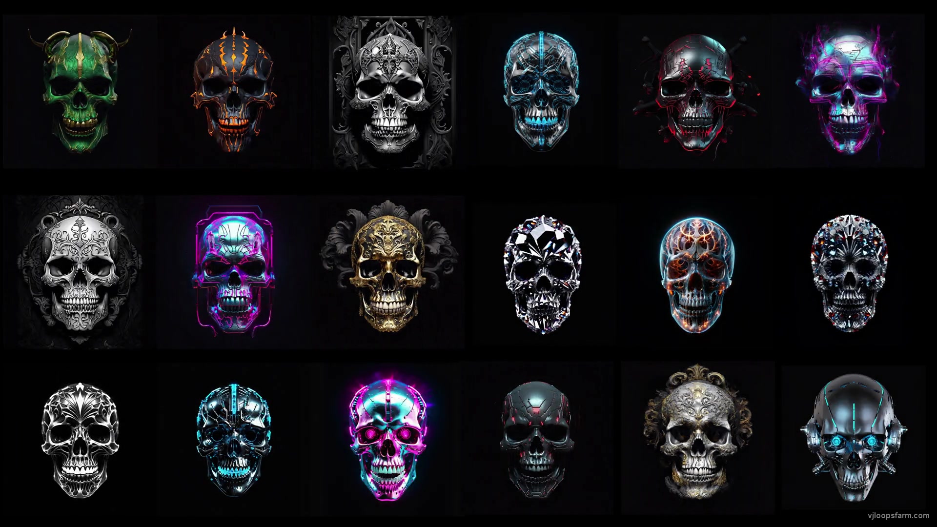 Elevate your live performances and visual projects with the Video Wall Halloween Skulls Pattern VJ Loop Z7 by . This mesmerizing loop clip features intricately animated Halloween skull patterns, meticulously generated using Stable Diffusion and brought to life in After Effects by renowned New Media Artist, Alexander Kuiava.