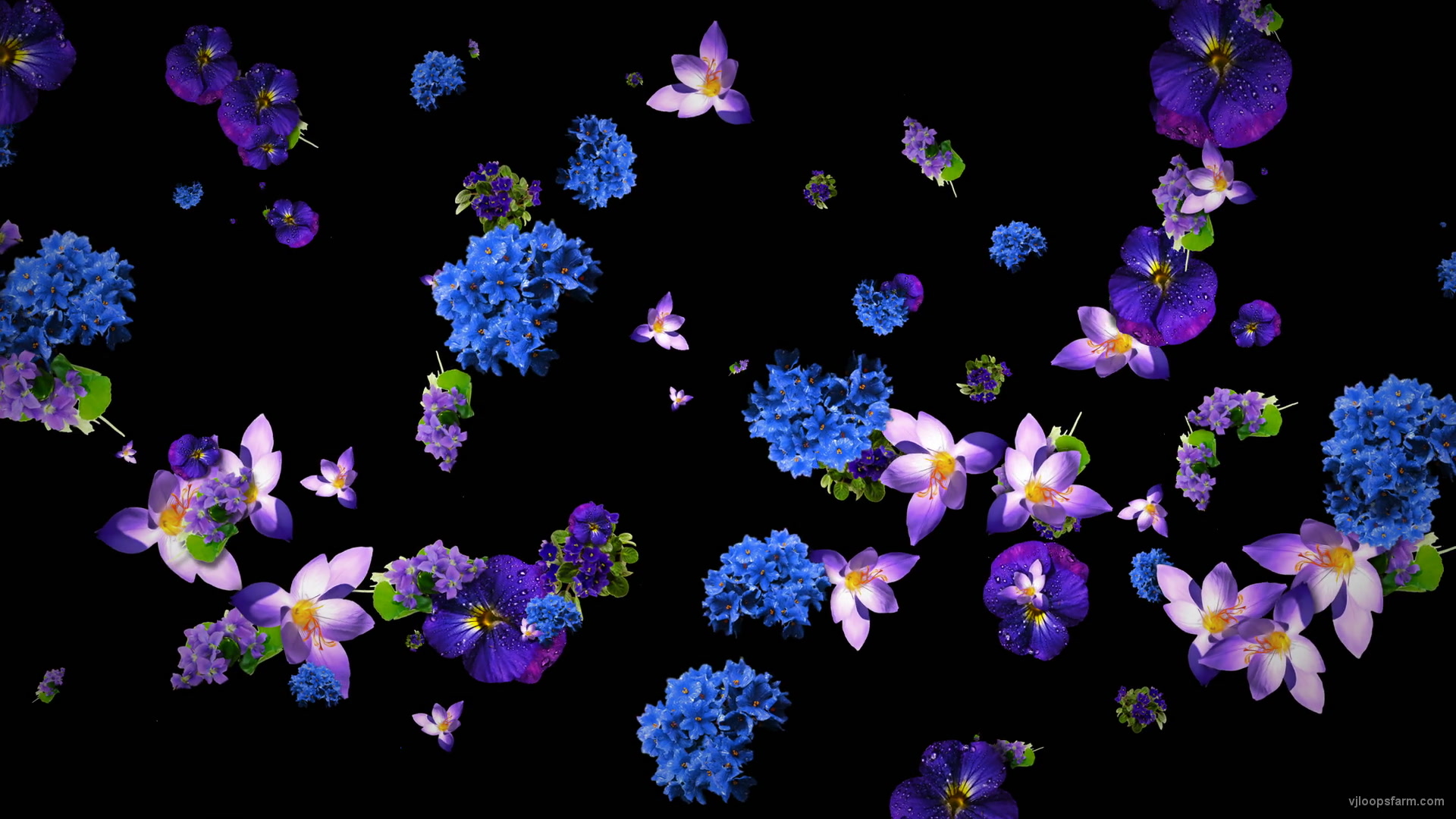 Royalty free video background with infinite flow of various color and nature flowers, buds and bouquets. Decorate a wedding event, ceremony, exhibition and any other event! Instant download for 60fps video vj loop with seamless effect. Exclusive royalty-free video of Violet and Blue Flowers Slowly Falling Down on Black Background download at Resolutions video category. 4096x2304 4K Video VJ Clip encoded by Quicktime Photojpeg. Multipurpose creative digital asset. For clubs and venues, events and festivals. For business and education. For hologram video projections and video editing projects. Amazing DJs motion backgrounds for virtual production and live events.