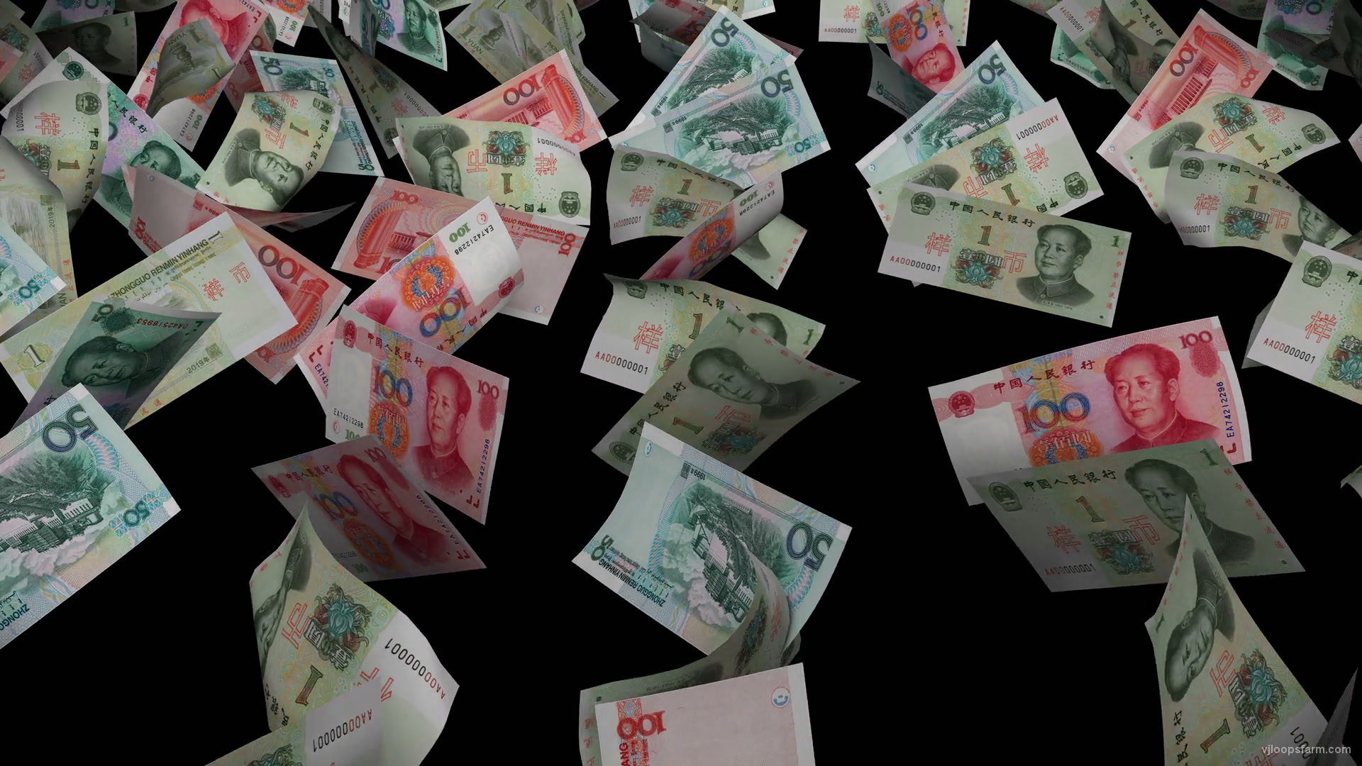 Download royalty free Yuan Chinese currency flowing down money motion background